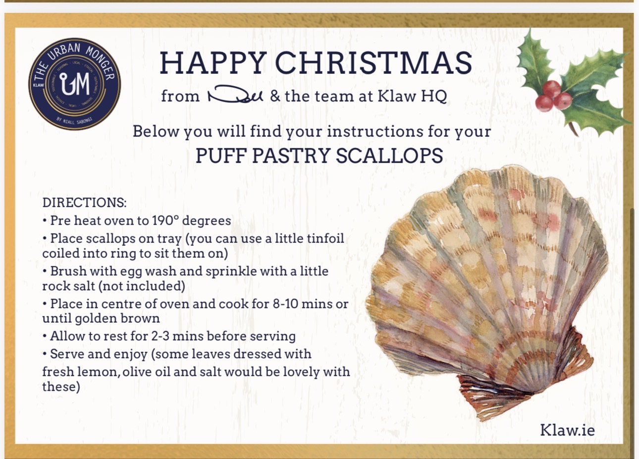 Six beautiful Curragh-caught scallops, served on the half shell and topped with a rich crab mornay, finished with an all-butter puff pastry cap.